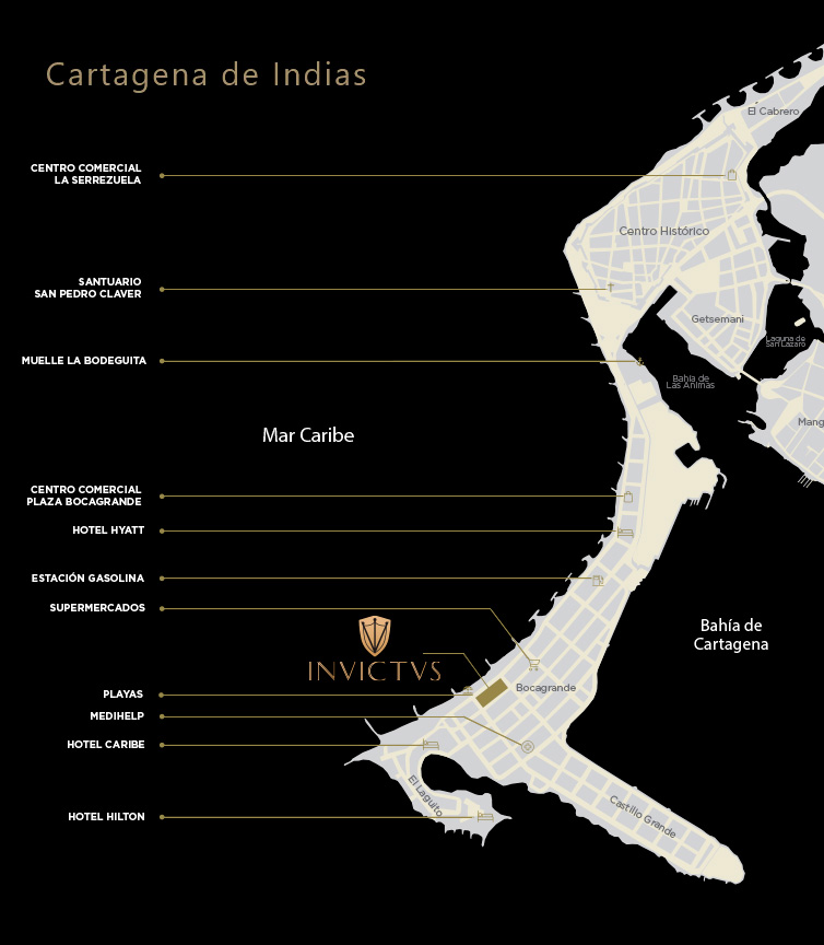 Invictvs es un proyecto que nace en el corazón de Bocagrande, un punto que conecta con exclusivos restaurantes, tiendas de lujo, glamurosos cafés y una ciudad amurallada con más de 500 años de historia; brindando un estilo de vida urbano único.